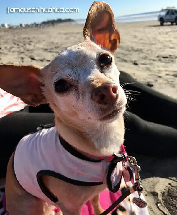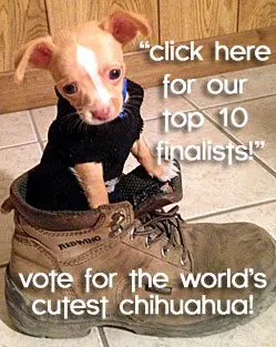 june – sweet little jolie topped the voting polls for our 2011 world’s cutest famous chihuahua picture contest! she lives in messina, italy with her mama danila, where she continues to strut her stuff as the world’s very first cutest famous chihuahua! “come si bella!”